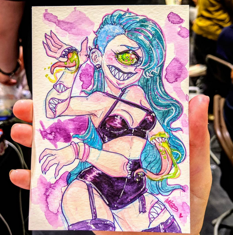 I design, produce, and promote my own products at conventions across the UK and Europe. In 2018 I sold my art at 28 conventions and run my online store full time shipping out orders worldwide.